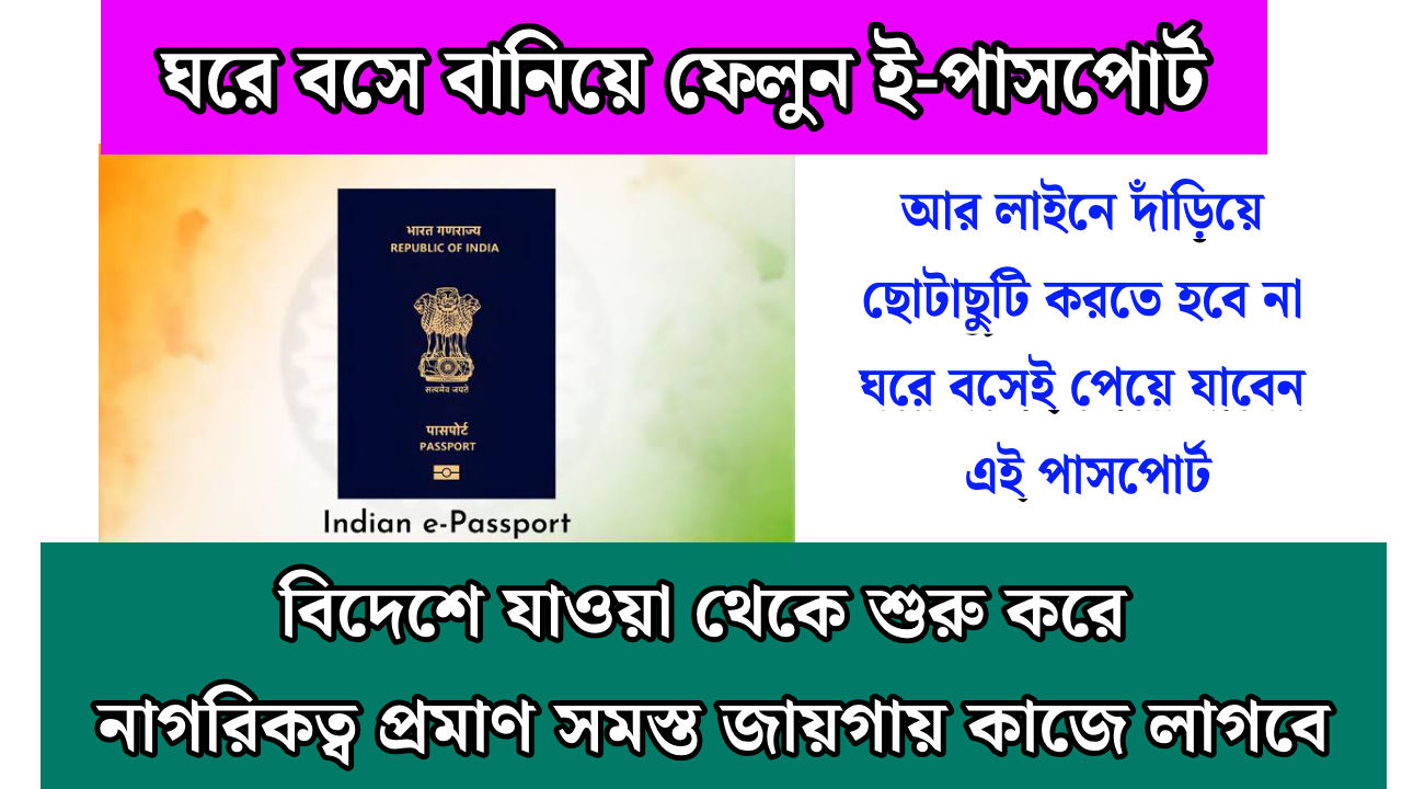 এবার পাসপোর্ট তৈরির ক্ষেত্রেও এল বিশাল বড় পরিবর্তন। প্রযুক্তির অগ্রগতির সঙ্গে সঙ্গে ভারত সরকার পাসপোর্ট পরিষেবায় এনেছে এক নতুন রূপ—ই-পাসপোর্ট (E-Passport)। এবার আপনি ঘরে বসেই আপনার ইচ্ছামত পাসপোর্ট বানিয়ে নিতে পারবেন এর জন্য আর আপনাকে ও দীর্ঘ লাইনে দাঁড়ানো, বারবার অফিসে যাওয়া কিংবা কাগজপত্র নিয়ে ঝক্কি পোহাতে হবে না। বর্তমান ডিজিটাল যুগের সবকিছুই ঘরে বসে করা সম্ভব। কয়েকটি সহজ ধাপ মেনে ঘরে বসেই আবেদন করা যাবে এবং হাতে পাওয়া যাবে আধুনিক, নিরাপদ ও আন্তর্জাতিক মানের পাসপোর্ট।
