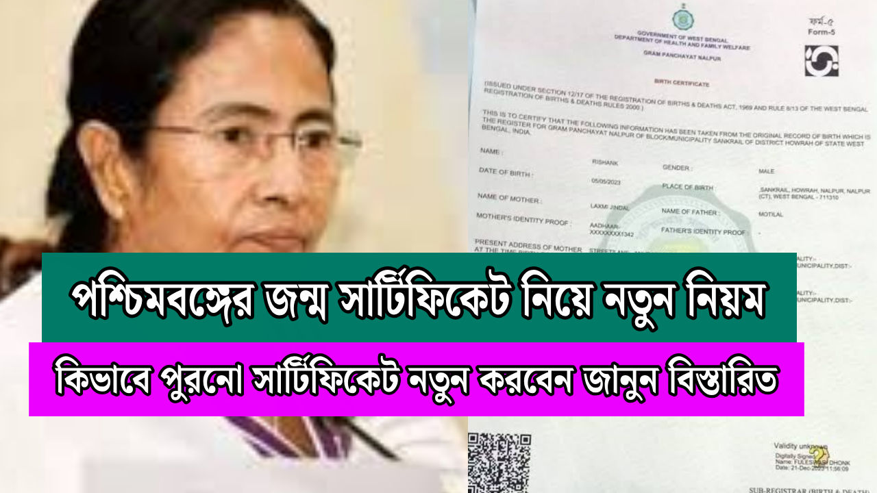 যারা এতদিন পর্যন্ত জন্ম সার্টিফিকেট বানায়নি তাদের জন্য পশ্চিমবঙ্গ সরকারের স্বাস্থ্য দপ্তর জন্ম সনদ নিয়ে নতুন গাইডলাইন প্রকাশ করেছে। এই নিয়ম অনুযায়ী সকলকে এবার বানাতে হবে ডিজিটাল জন্ম সার্টিফিকেট। এই পরিবর্তনের ফলে জন্ম সনদ সংশোধন বা নাম পরিবর্তনের প্রক্রিয়ায় বড়সড় রদবদল আনা হয়েছে। এর ফলে যাদের নাম বা অন্য কোন ভুল রয়েছে সেগুলো সংশোধন করে নিতে পারবেন। আগে অনেক ক্ষেত্রে সহজেই নাম পরিবর্তন করা যেত, কিন্তু এখন থেকে নির্দিষ্ট শর্ত ছাড়া এই সুযোগ আর পাওয়া যাবে না। নতুন করে জন্ম সার্টিফিকেট বানানোর ক্ষেত্রেও এসেছে বেশ কিছু পরিবর্তন। সরকারের দাবি, ভুয়া নথি ব্যবহার, দুর্নীতি এবং প্রশাসনিক গাফিলতি বন্ধ করতেই এই নতুন পদক্ষেপ নেওয়া হয়েছে।