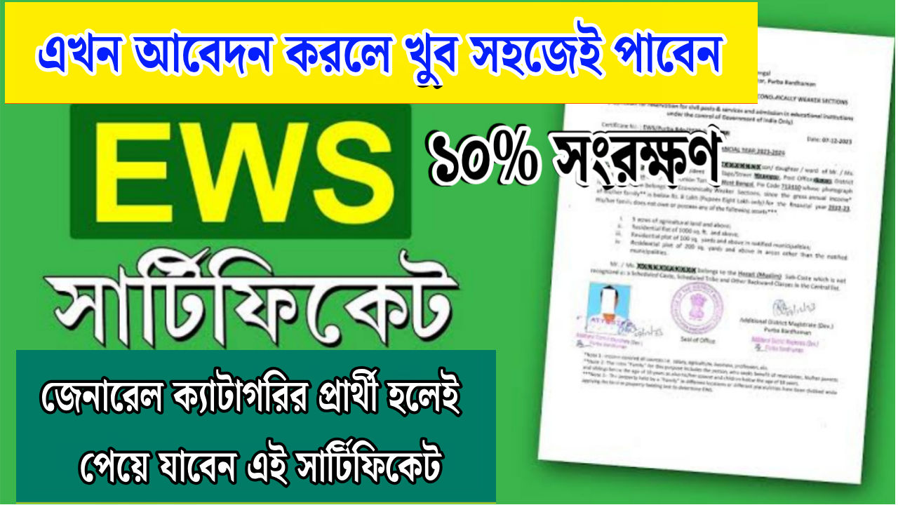 EWS বা Economically Weaker Section হলো সাধারণ (General) শ্রেণির সেই সমস্ত মানুষ, যাঁরা SC/ST বা OBC ক্যাটাগরির অন্তর্ভুক্ত নন কিন্তু আর্থিকভাবে দুর্বল। আর্থিকভাবে দুর্বল থাকার জন্য এরাও পড়াশুনায় বা বিভিন্ন সমস্যায় সম্মুখীন হয় সমস্ত ক্ষেত্রে আর্থিক বাধা প্রতিকূলতা হয়ে দাঁড়ায়। তাঁদের আর্থিক অবস্থার কথা মাথায় রেখে কেন্দ্র ও রাজ্য সরকার তাঁদের জন্য ১০% সংরক্ষণের ব্যবস্থা করেছে। এই সার্টিফিকেট বানানোর ফলে এরাও সরকারি চাকরি থেকে শুরু করে সমস্ত জায়গায় সংরক্ষণের সুযোগ পাবে। বিশেষভাবে বলে রাখা ভালো বর্তমান পশ্চিমবঙ্গে এই EWS ক্যান্ডিডেটের সংখ্যা খুবই কম তাই পশ্চিমবঙ্গের সমস্ত চাকরির ক্ষেত্রে এই সংরক্ষণে ভ্যাকেন্সি প্রায় ফাঁকা থেকে যায়। আপনি যদি এখনই সার্টিফিকেট বানাতে পারেন তাহলে আপনিও পাবেন বিভিন্ন ধরনের সুযোগ সুবিধা।